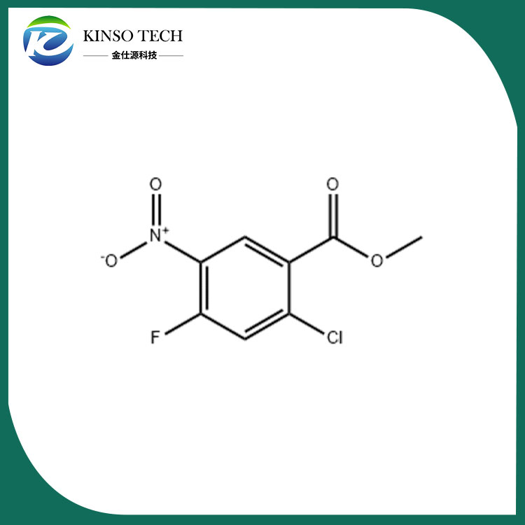 Kinsotech 2-Chloro-4-fluoro-5-nitro-benzoic acid metil ester putih nganti bubuk putih. Titik didih: 324,7 ± 37,0 ℃; Kapadhetan: 1,503±0,06 g / cm3. Kondisi panyimpenan: suhu kamar, disegel, garing.